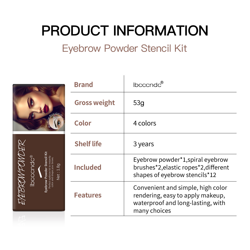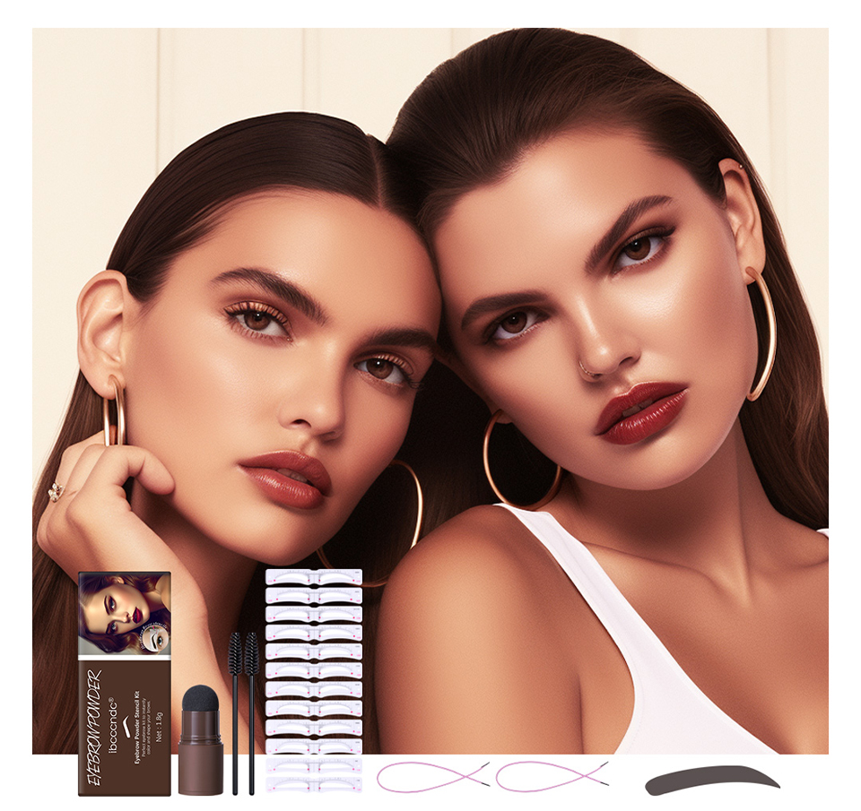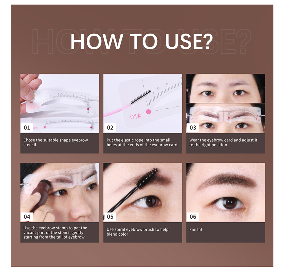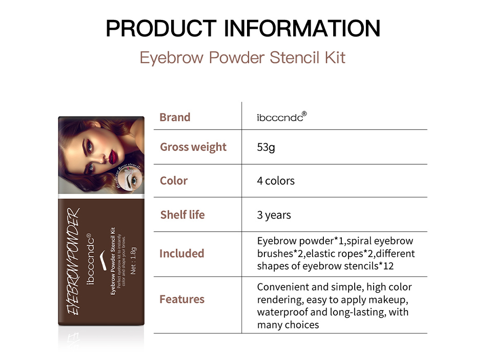 产品名称:印章眉粉套装(内含产品:眉膏、12个眉卡、弹性绳、两个刷头)卖点: 1、设计方便简捷,头戴式眉卡可以在涂眉粉时不那么手足无措,新手也能轻松画出精致眉毛 2、选择多样性,四种颜色、12种眉卡眉型可供选择。 3、防水防汗,带妆持久,不掉色。 4、套装设计,工具齐全,内置眉膏、头绳、眉卡及两个刷头,专业螺旋眉刷,妆前梳理眉毛,妆后修饰眉型,令眉形更自然。