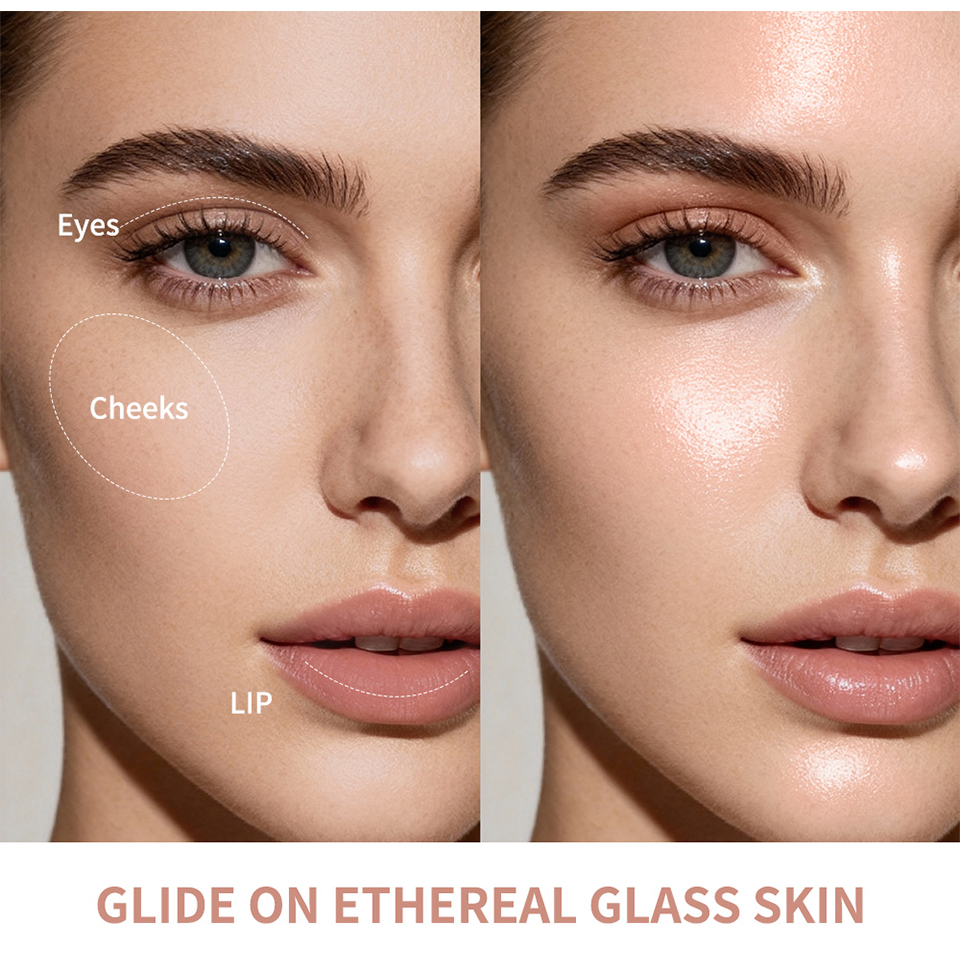 3、核心妆效:打造 “清透琉璃肌” 质感,光泽感水润通透不夸张,呈现 “由内而外的发光” 效果,而非厚重金属光,适配日常通勤、红毯妆等多种场景。