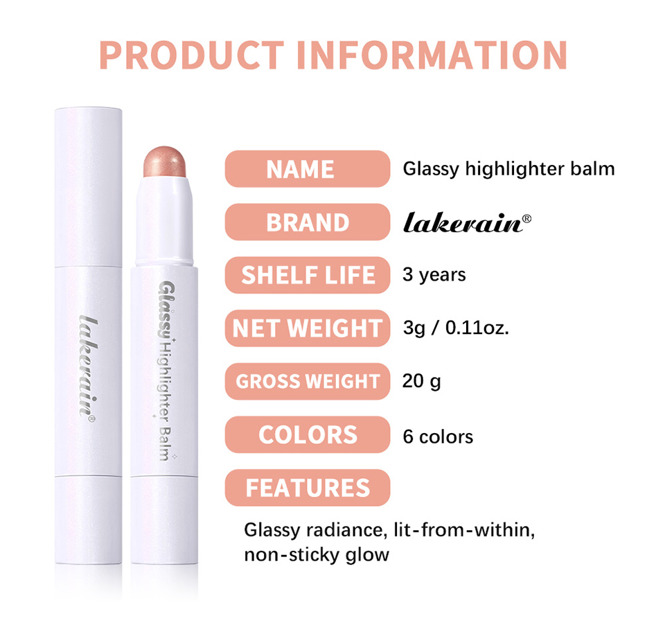 lakerain保湿玻璃光泽笔 修容高光棒眼部高光膏
