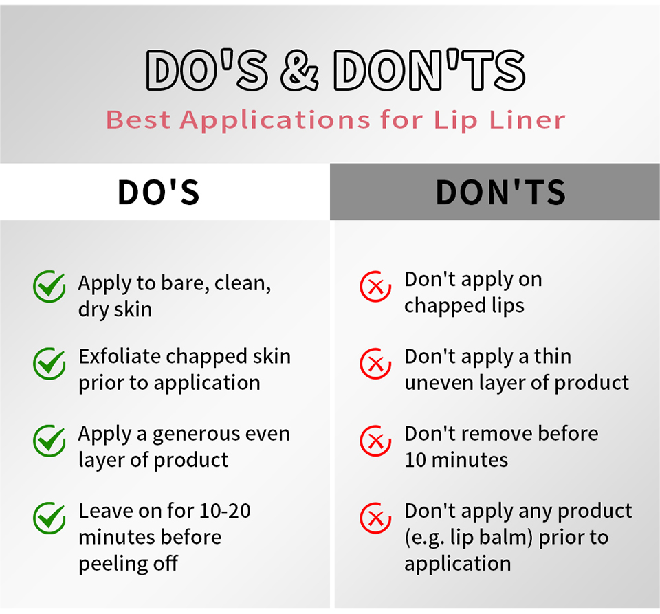 特点: 1.这款可剥离的唇线笔可为唇部提供持久唇色; 2.具有防水,不转移、不褪色、不晕染的特点; 3.成分中含有透明质酸和维生素E,可滋润双唇; 4.有4种色号可供选,适合不同肤质和肤色的人使用; 5.最终剥离的颜色呈现出哑光效果。 6.是尖头的刷头。