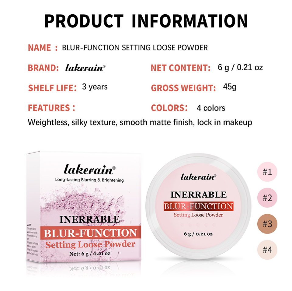产品特点: 1、核心特点是长效持妆 + 柔焦雾面 + 轻薄控油 2、可模糊毛孔、抚平肌肤纹理,打造哑光雾面妆感,让妆面更显精致干净。 3、质地轻薄松散,上脸无厚重感,不会闷肤或卡粉,叠加使用也能保持妆面通透。 4、具备基础控油效果,能吸附面部多余油脂,延长底妆清爽时间,适合混合皮、油皮或易出油体质。