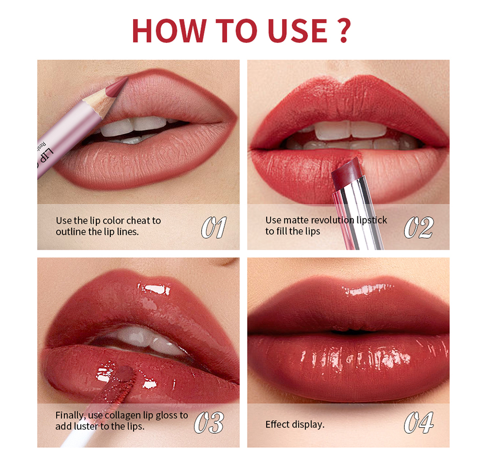 特点: 1、造型小巧便捷:便于旅行外出携带,可以放入小型手包、口袋中。 2、功能多样组合:产品包含唇线笔、口红、唇蜜,使用一套产品就能完成唇部打底、勾勒唇形、上色等一系列步骤,满足不同唇部妆容需求。