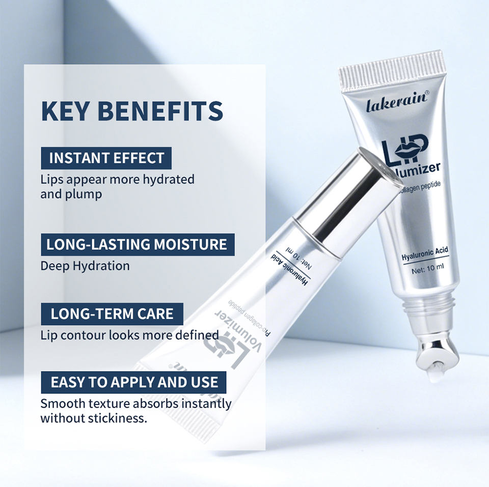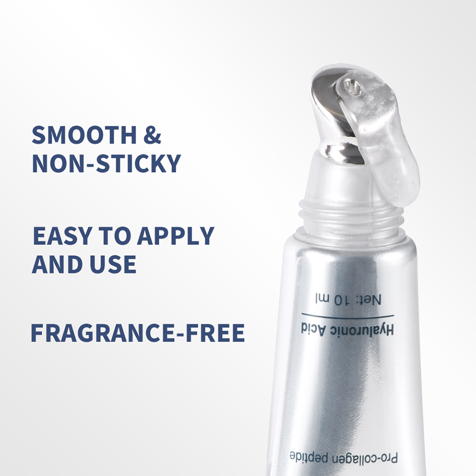 产品特点: 1.是一款非侵入式的外用唇部护理产品,能即刻起效,并随着时间推移显著丰盈双唇; 2.产品含有透明质酸,一经接触双唇,即可实现即时丰盈效果,并提供 48 小时深度保湿; 3.促胶原蛋白肽(指的是成分中的棕榈酰三肽-1成分) 能有效抚纹,让双唇轮廓更清晰,重现年轻美态 4.无香料配方。不黏腻。 5.有轻微的辣感