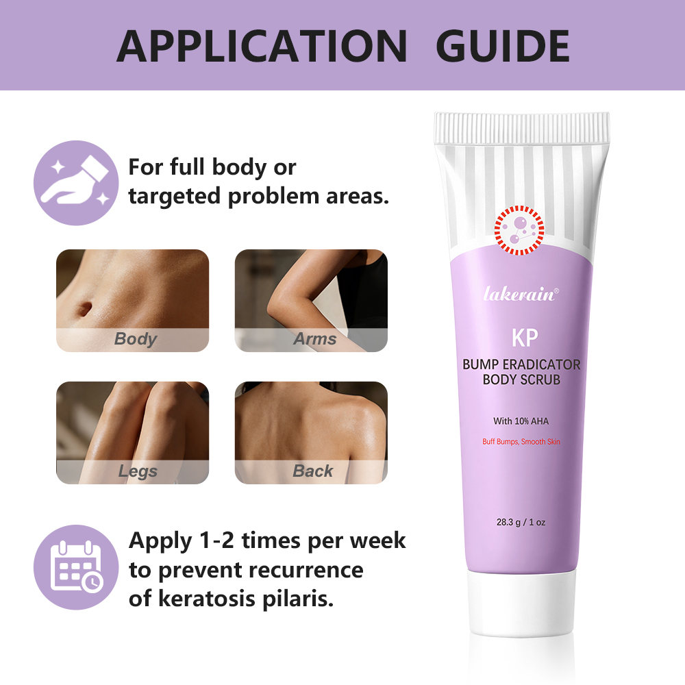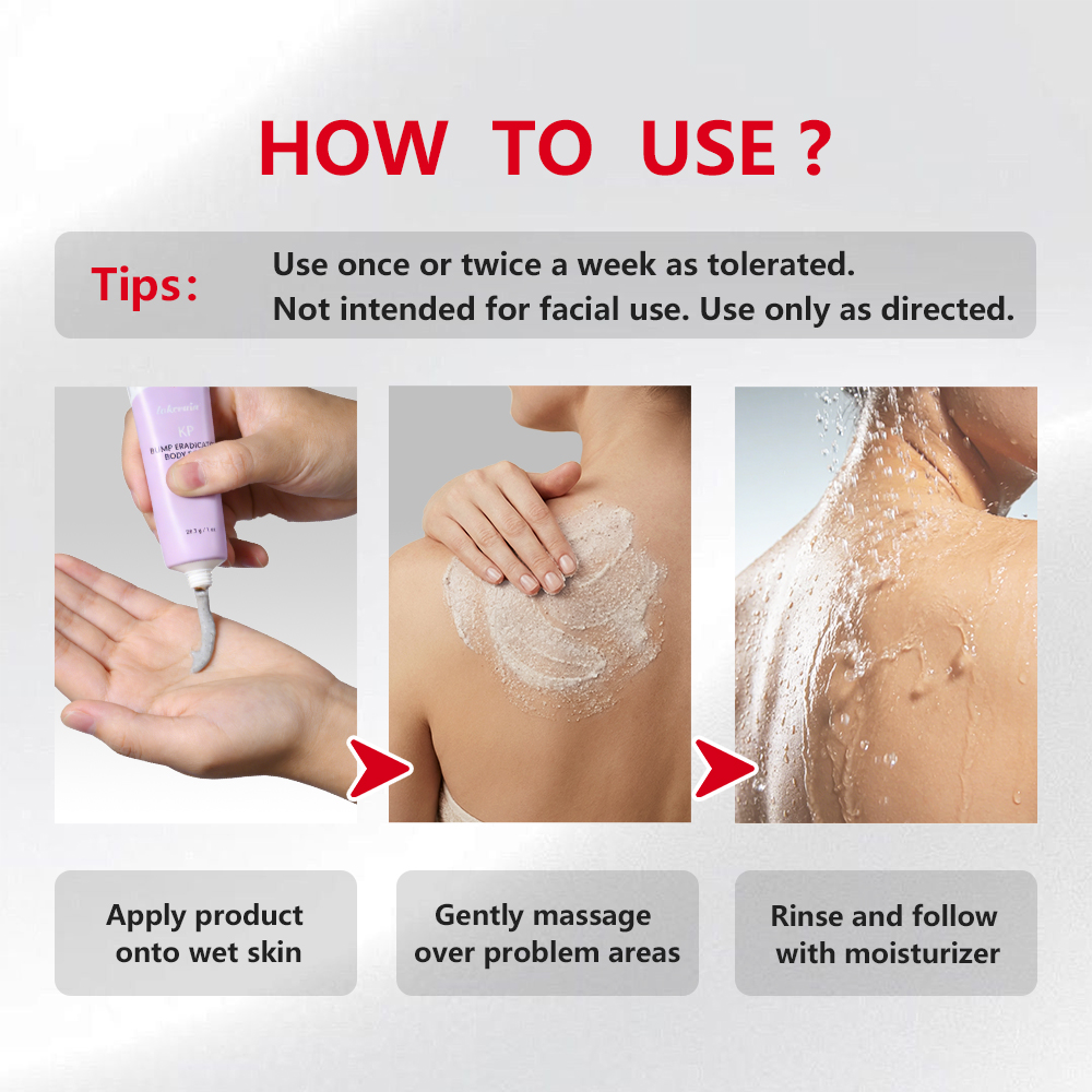 日常护理:每周使用 1-2 次,用于全身或局部问题区域(如手臂、大腿、后背),预防毛周角化复发;