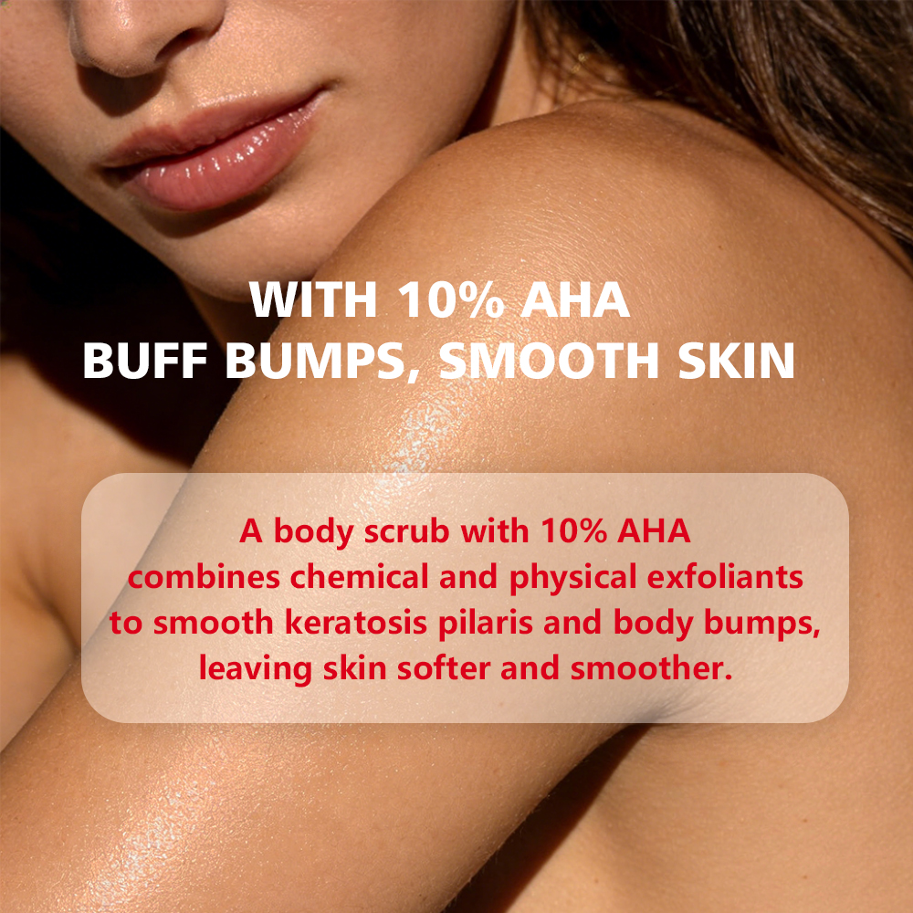 化学去角质:含 10% 浓度复合 AHA(乙醇酸 + 乳酸),温和溶解老废角质、疏通毛孔,从根源改善毛周角化(KP)引发的颗粒感,同时提亮暗沉肌肤;