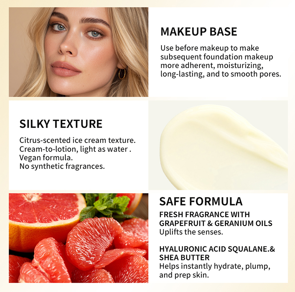 1、这是一款妆前底霜,针对底妆卡粉、斑驳、搓泥、假面等问题,妆前使用,使后续的底妆更服帖、润泽、持久、抚平毛孔