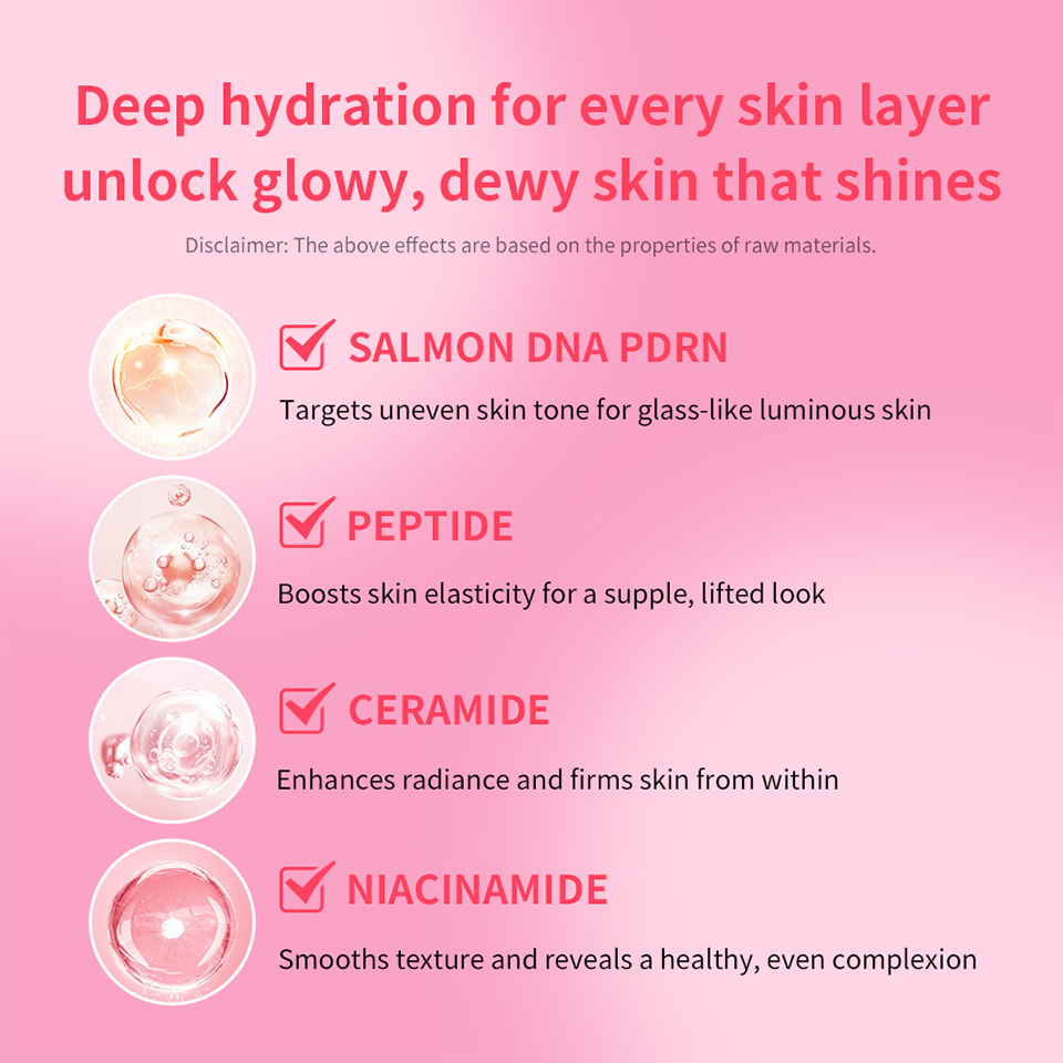1、以烟酰胺为核心提亮成分,搭配三文鱼 DNA PDRN,既能改善肤色不均问题,又能帮助肌肤恢复清爽状态,打造透亮气色;同时添加神经酰胺和多肽,这两种成分是强化肌肤屏障的关键,能减少肌肤水分流失,让保湿效果更持久。